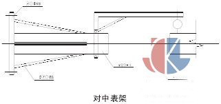 由于青海鹽湖工程施工條件的原因空氣壓縮機先采用傳統(tǒng)的方工進行對中;在以往的對中過程中,大多采用雙表法或是多表法進行對中。但在本工程中由于空氣壓縮機兩軸端的兩個聯(lián)軸器之間的距離較長,使用單表法可獲得比雙表法或多表法更理想的對中效果。由于聯(lián)軸器之間的距離過長,我們自行設計了表支架具體如下圖所示: