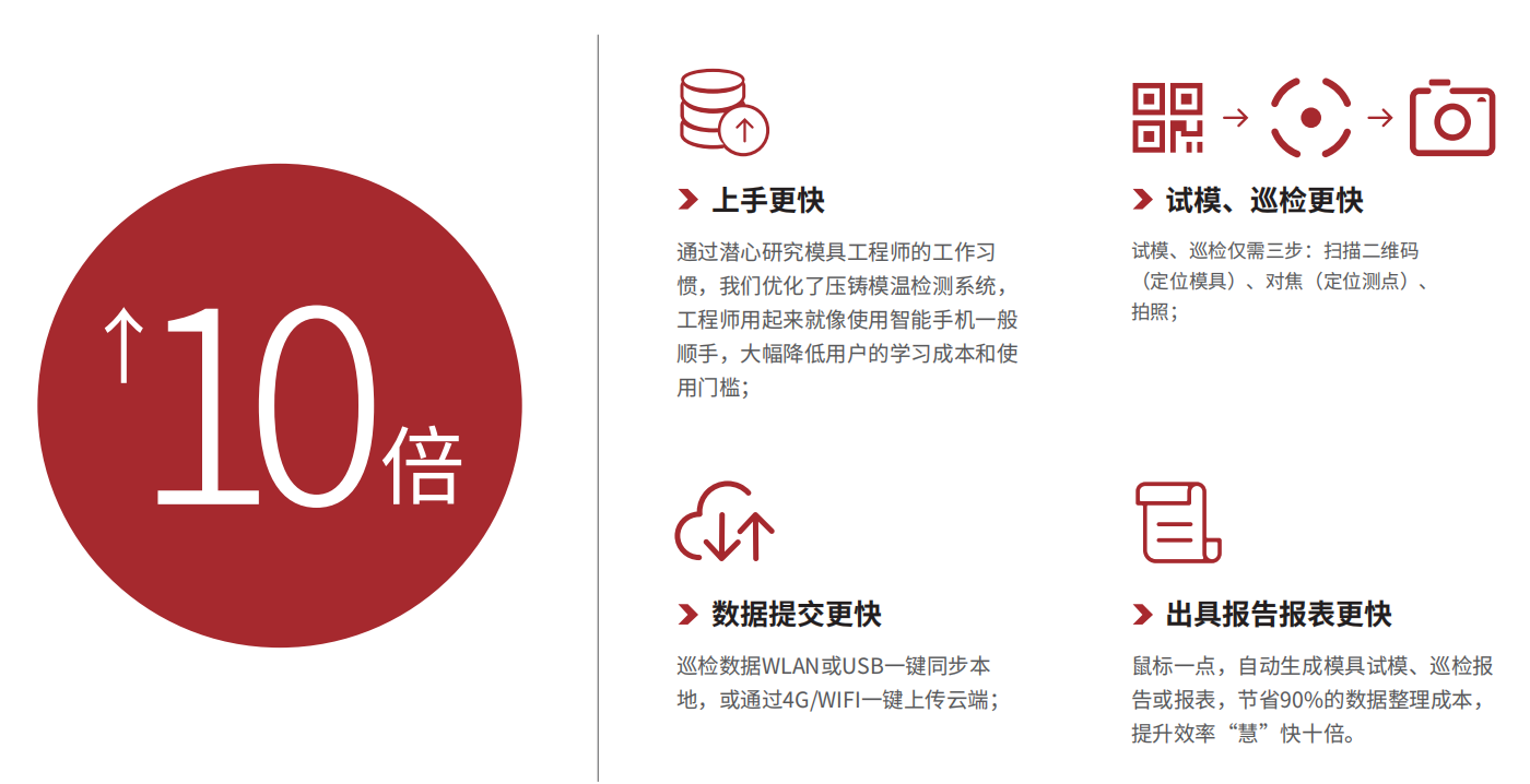 如今,我們?cè)俅瓮黄疲槍?duì)壓鑄行業(yè),推出FOTRIC 壓鑄模溫檢測(cè)系統(tǒng)。
